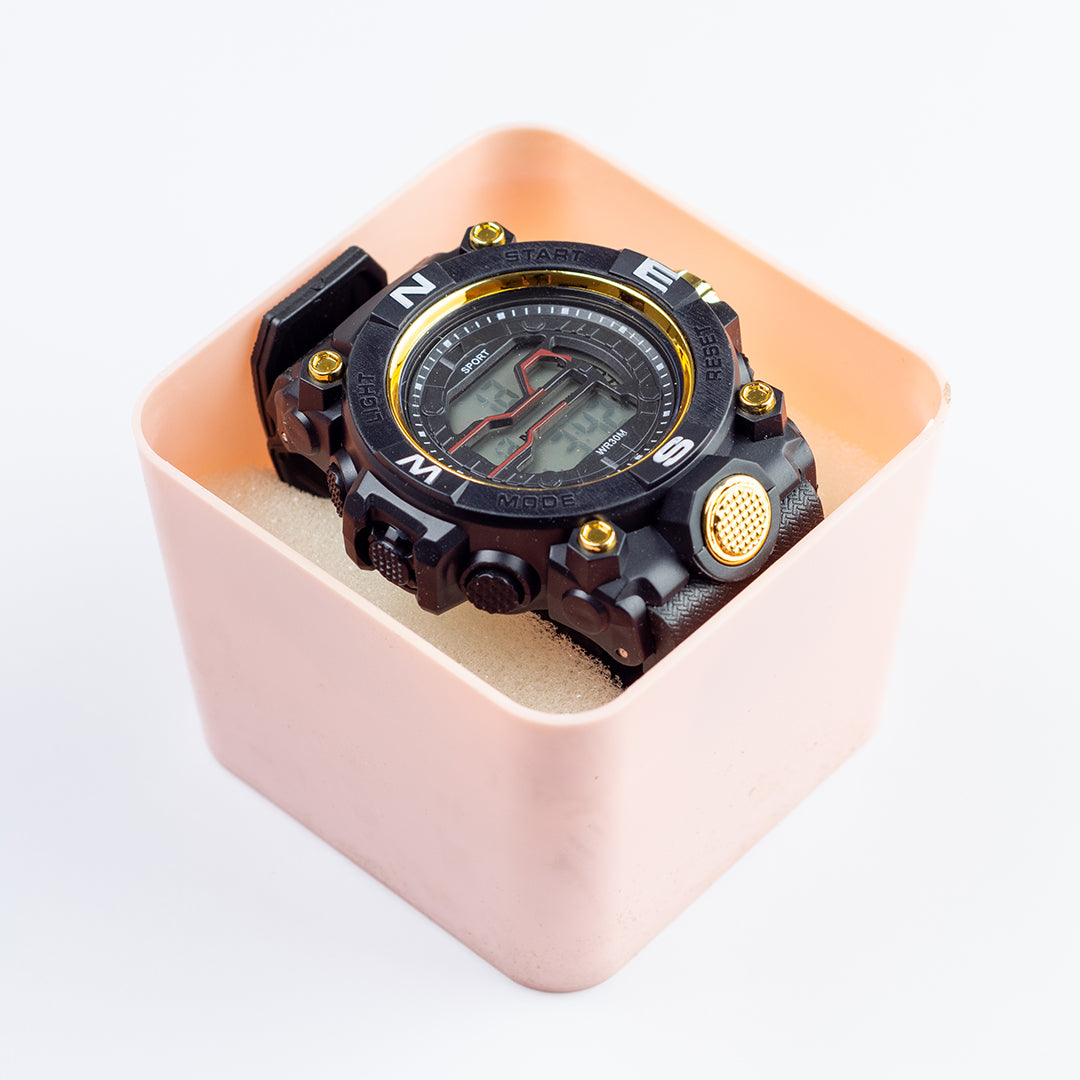 - Hora | Día y fecha | Alarma | Cronómetro | Luz