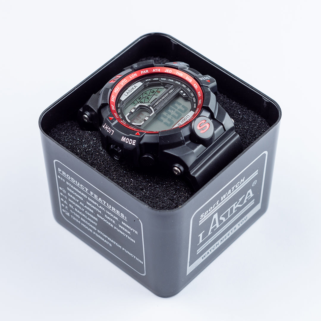 - Hora | Día y fecha | Alarma | Cronómetro | Luz