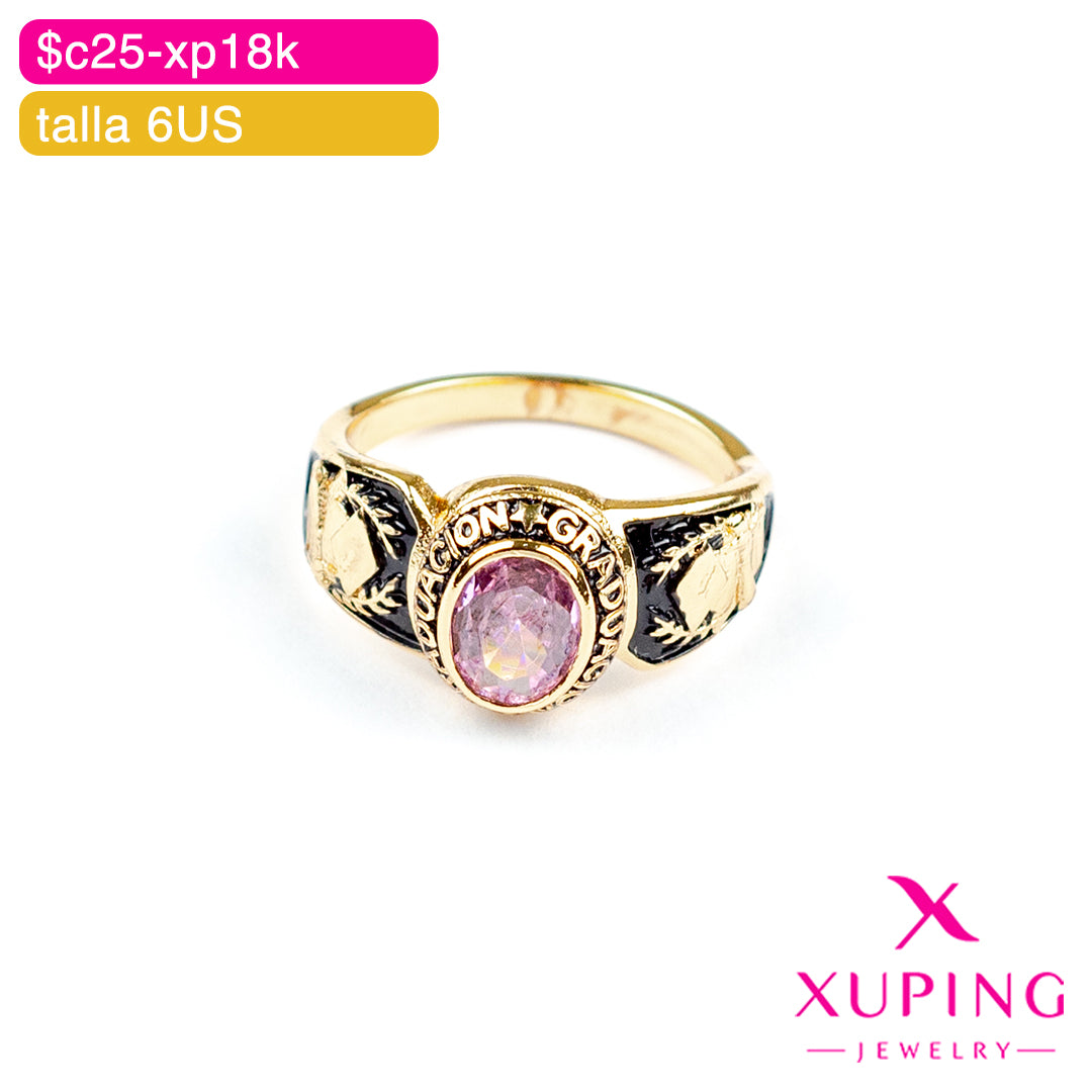 Celebra tu logro con el anillo de graduación Xuping, elaborado en aleación de cobre con un elegante chapado en oro 18K. Su diseño incluye una brillante incrustación de zirconia y un grabado personalizado que realza su exclusividad. Perfecto para marcar un momento especial, disponible en venta al por mayor y menor, con envíos a toda Guatemala. Destaca tu éxito con estilo y calidad.