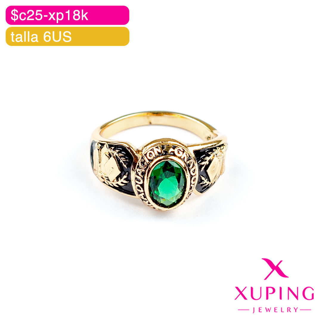Celebra tu logro con el anillo de graduación Xuping, elaborado en aleación de cobre con un elegante chapado en oro 18K. Su diseño incluye una brillante incrustación de zirconia y un grabado personalizado que realza su exclusividad. Perfecto para marcar un momento especial, disponible en venta al por mayor y menor, con envíos a toda Guatemala. Destaca tu éxito con estilo y calidad.