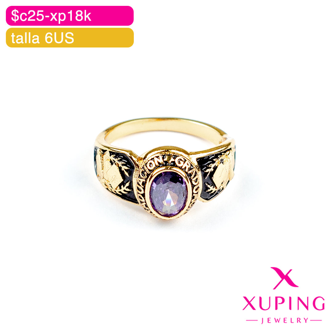 Celebra tu logro con el anillo de graduación Xuping, elaborado en aleación de cobre con un elegante chapado en oro 18K. Su diseño incluye una brillante incrustación de zirconia y un grabado personalizado que realza su exclusividad. Perfecto para marcar un momento especial, disponible en venta al por mayor y menor, con envíos a toda Guatemala. Destaca tu éxito con estilo y calidad.