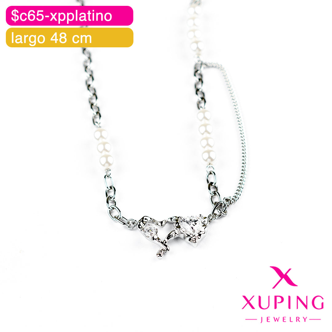 (XPE_00580) Gargantilla de corazón y perlas 48 cm