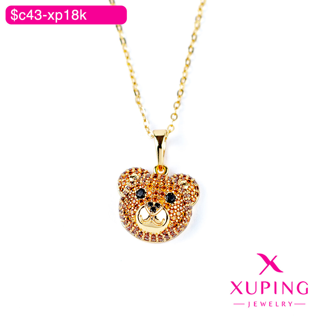 Esta gargantilla de 45 cm de la marca Xuping combina audacia y estilo con su dije en forma de cabeza de oso. Fabricada en aleación de cobre y chapada en oro 18K, ofrece un brillo duradero y un diseño que destaca en cualquier ocasión. Perfecta para quienes buscan un accesorio que imponga presencia y refleje confianza.