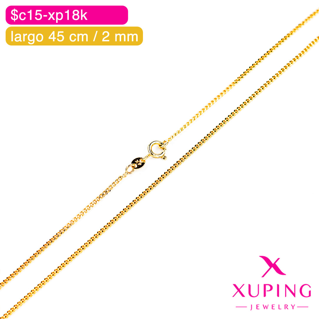 Descubre la elegancia contemporánea con nuestra cadena marca Xuping, confeccionada en aleación de cobre con un acabado enchapado en oro 18K que asegura durabilidad y brillo excepcionales. Su diseño combina sofisticación y tendencia, ideal para complementar cualquier look con un toque moderno y refinado.