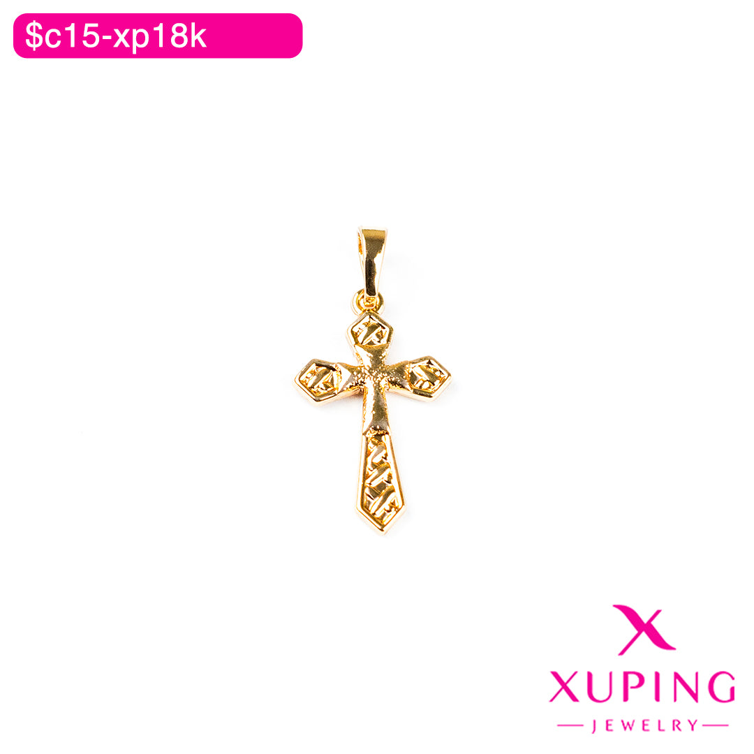 ¡Lleva tu fe contigo con el dije de cruz Xuping en color 18K! Este dije de cruz es una expresión elegante de tu creencia en un diseño único de la marca Xuping.