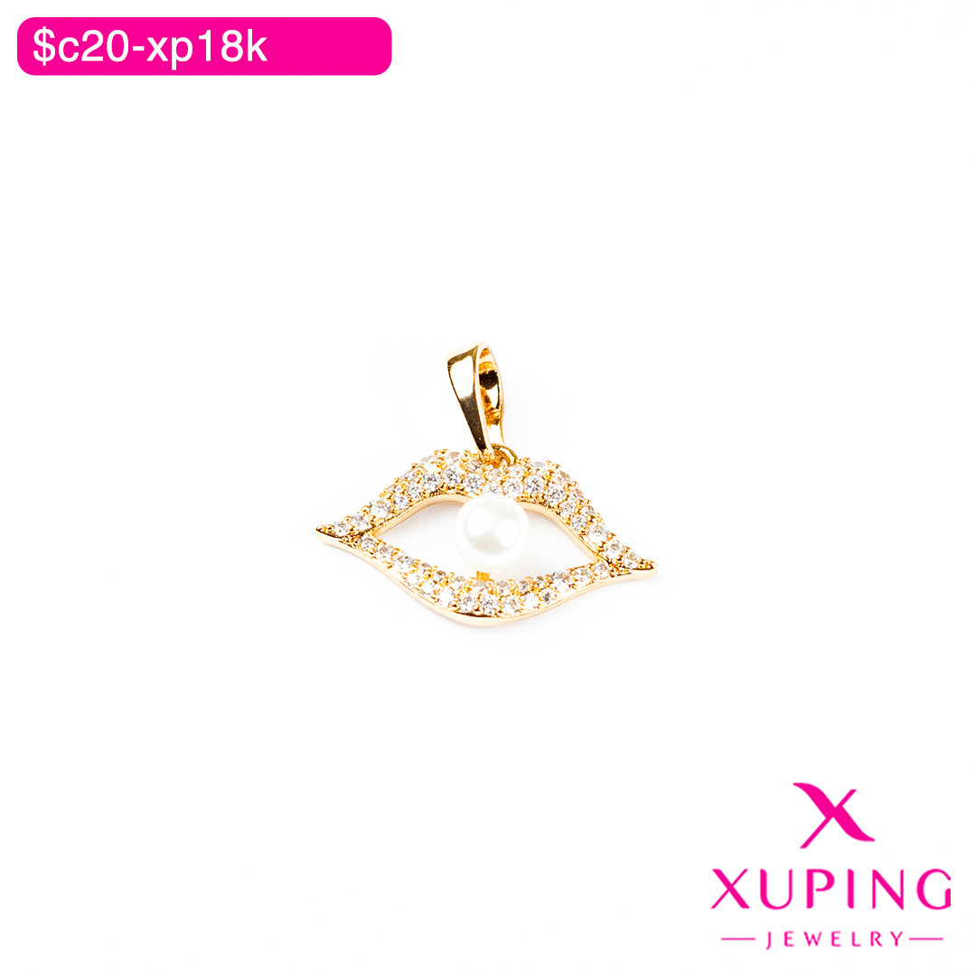 Este dije de beso es un accesorio elegante y romántico. Con su forma de labios y una perla que simboliza un beso, te hará sentir hermosa y deseada. De la marca Xuping, está disponible en un brillante color 18K.