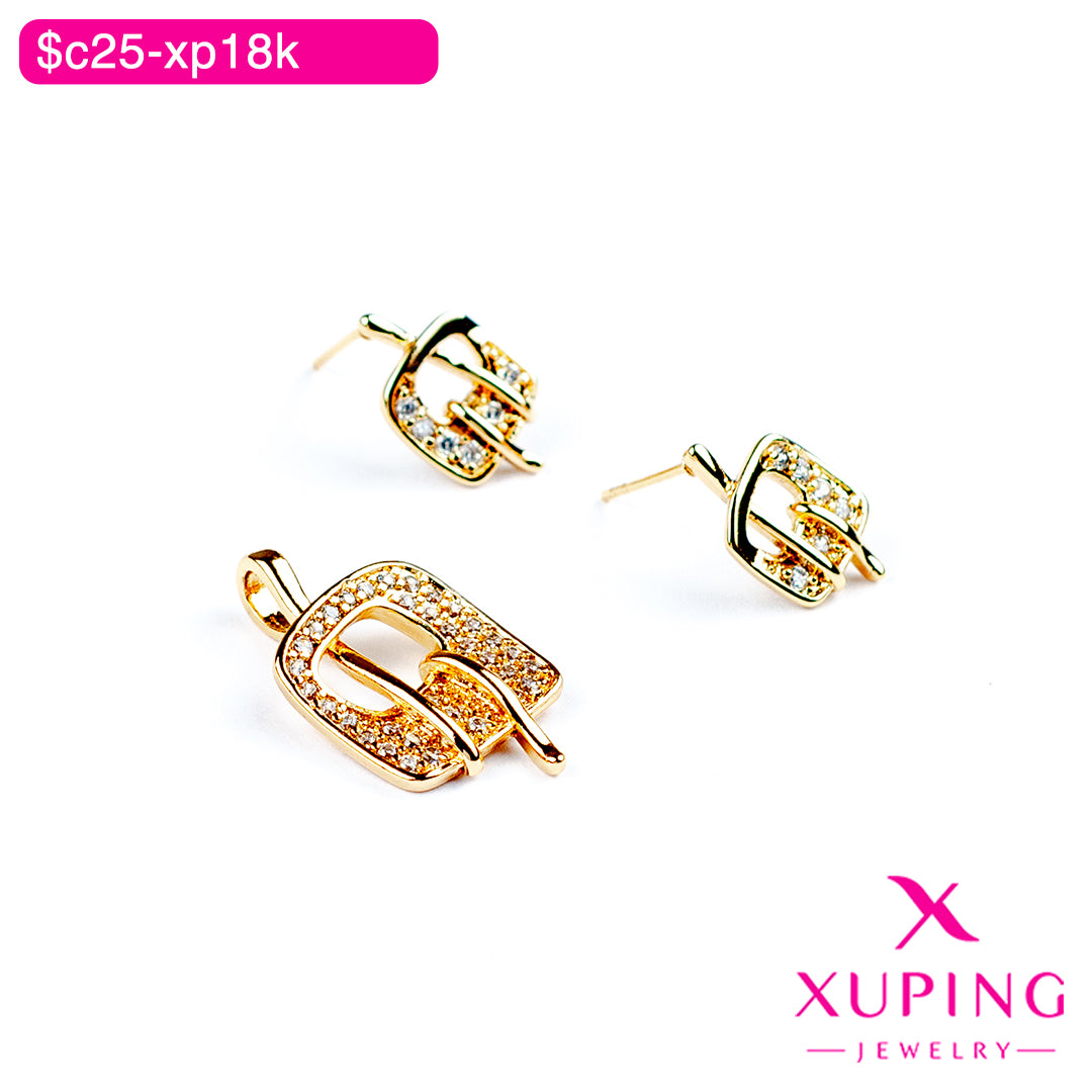 Descubre la elegancia natural con este juego de joyería de la marca Xuping, elaborado en aleación de cobre y chapado en oro de 18K. Su diseño aporta un toque sofisticado y versátil, ideal para combinar y realzar cualquier estilo.