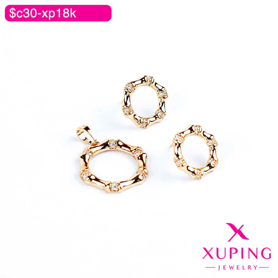 Descubre la elegancia y durabilidad del juego de joyería Xuping, elaborado en una resistente aleación de cobre con un acabado en baño de oro de 18K. Este conjunto ofrece un brillo sofisticado y una apariencia refinada que realzará cualquier atuendo, perfecto para ocasiones especiales o para añadir un toque de lujo a tu día a día.