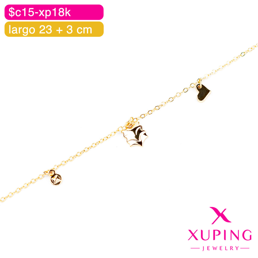 ¡Siente a flor de piel el amor con nuestra tobillera de corazones! Con colgantes de corazones y chapado en oro 18K de la marca Xuping, esta tobillera es perfecta para cualquier ocasión.