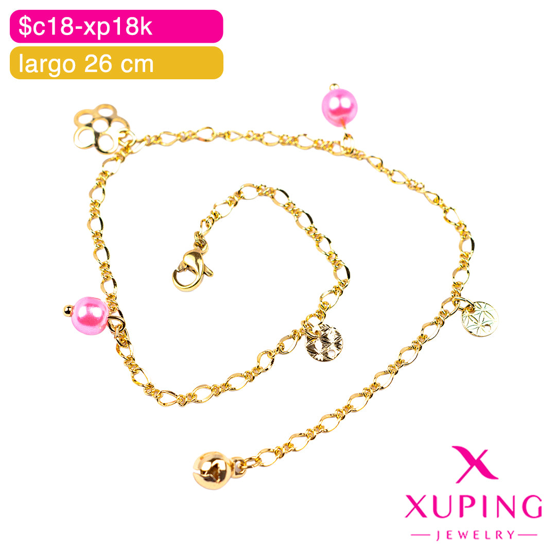 Esta tobillera de la marca Xuping combina estilo y durabilidad, fabricada en aleación de cobre con un elegante chapado en oro de 18K / platino. Su diseño moderno y sofisticado realza cualquier look, aportando un toque de brillo y distinción a tu outfit diario. Ideal para quienes buscan un accesorio versátil y de calidad que resista el uso cotidiano sin perder su belleza.