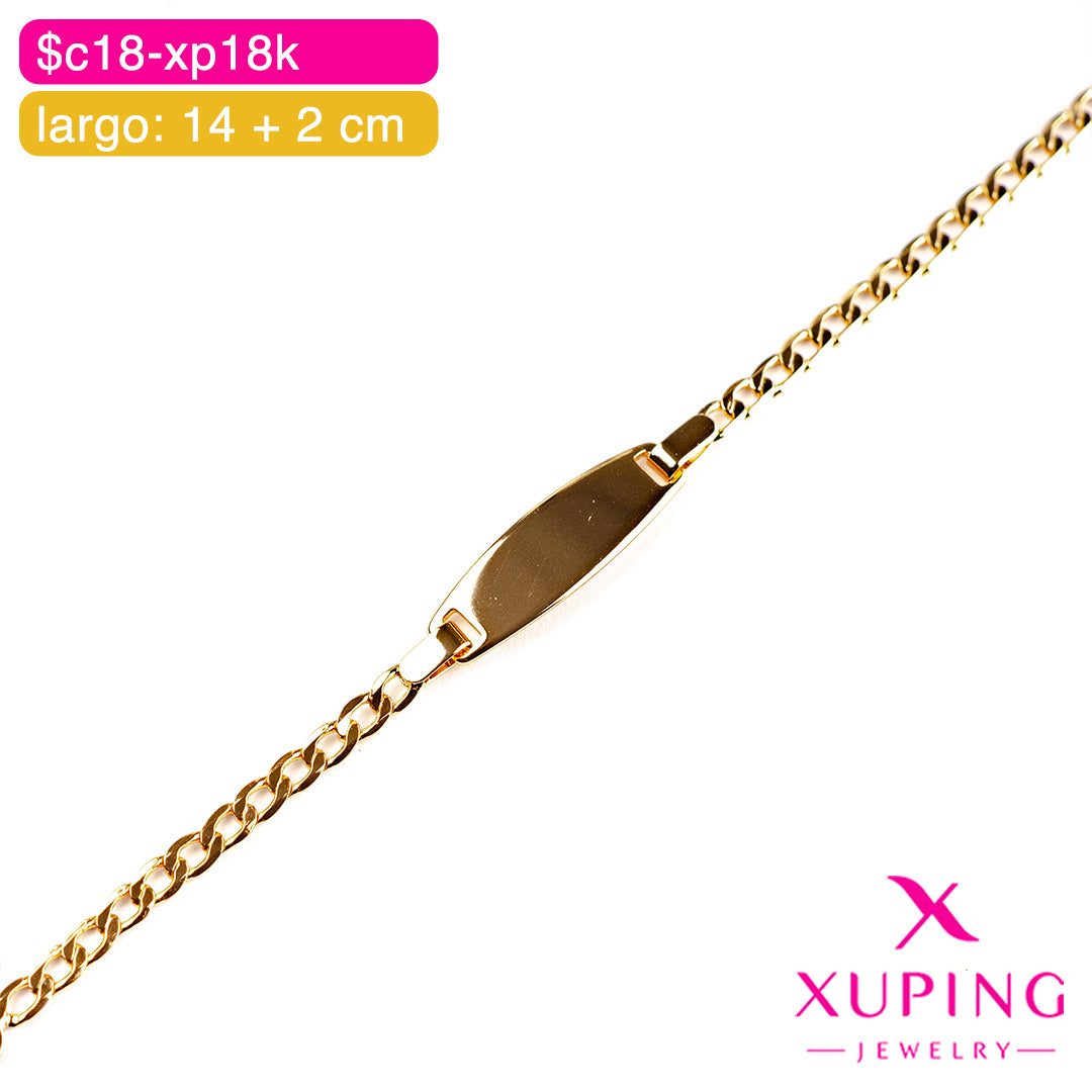 ¡Haz que tu bebé se vea elegante desde temprana edad con nuestra pulsera Xuping! Esta hermosa pulsera viene con una plancha para grabar el nombre de tu pequeño, lo que la convierte en un regalo personalizado y especial. ¡Aprovecha esta oportunidad para aumentar el encanto y estilo de tu bebé!