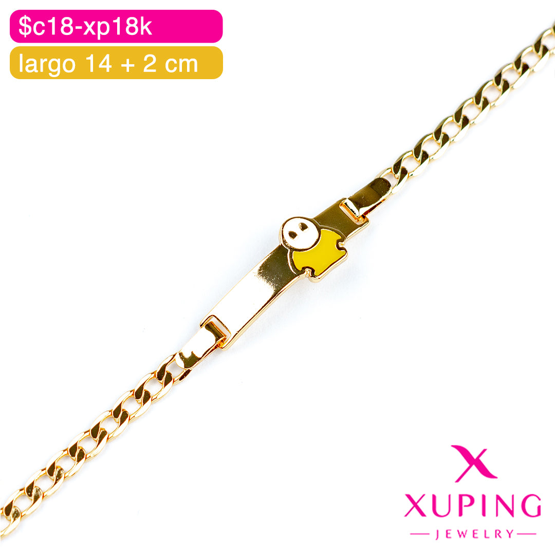 Esta pulsera ajustable para bebé combina elegancia y personalización, perfecta para un regalo especial. Fabricada por Xuping en aleación de cobre con chapado en oro 18K, ofrece un acabado brillante y duradero. Su plancha permite grabar nombres, haciendo cada pieza única y significativa. Con un largo ajustable de 14 a 16 cm, se adapta cómodamente al crecimiento del bebé, convirtiéndola en un accesorio práctico y con estilo. Ideal para quienes buscan una joya delicada y personalizada que acompañe momentos inolvidables.